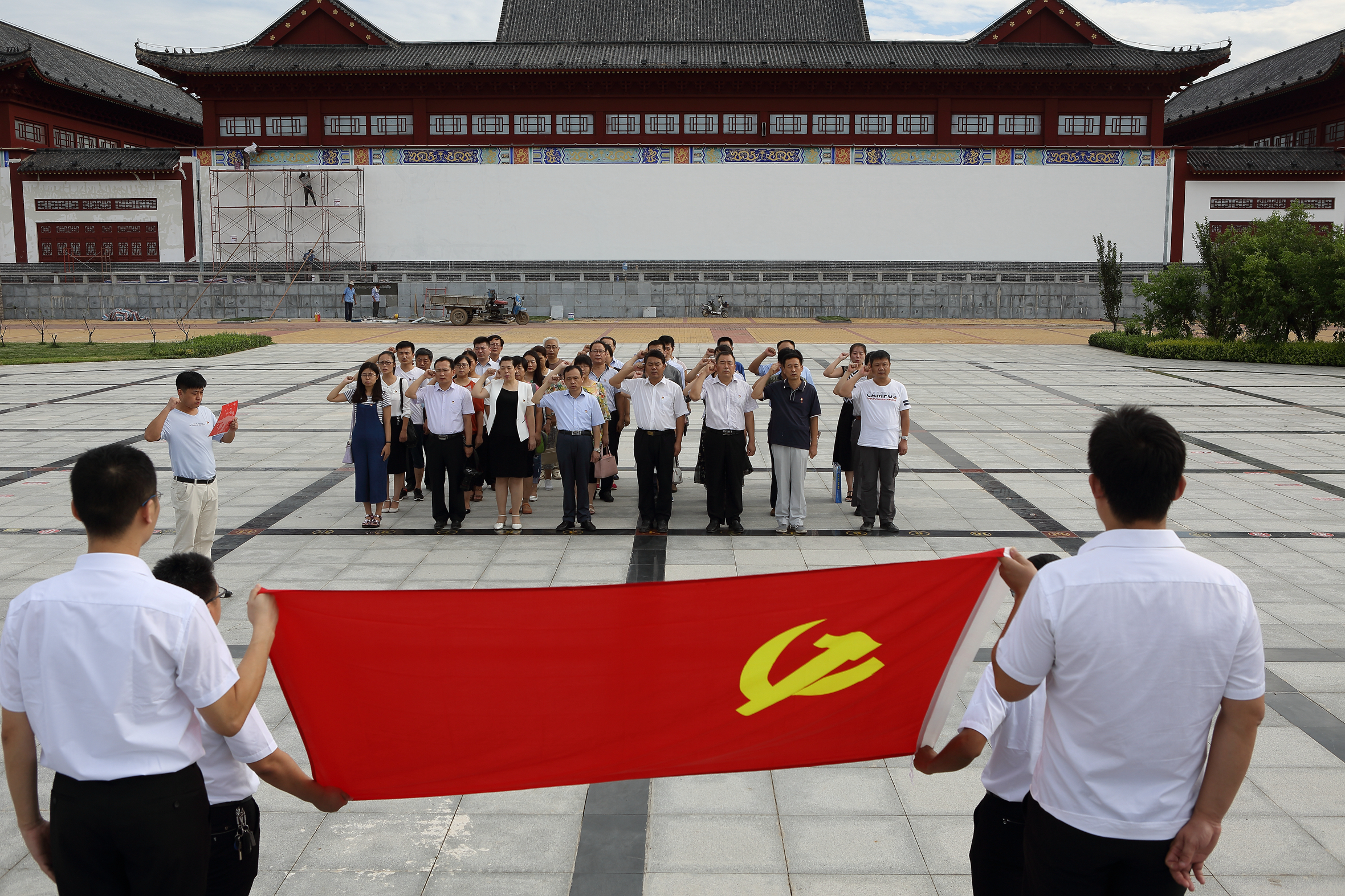 在烈士纪念广场,党员们面向庄严的人民英雄纪念碑列队肃立,向革命先烈鞠躬致敬,并重温入党誓词,表达为党的事业奋斗终身的坚定决心。
